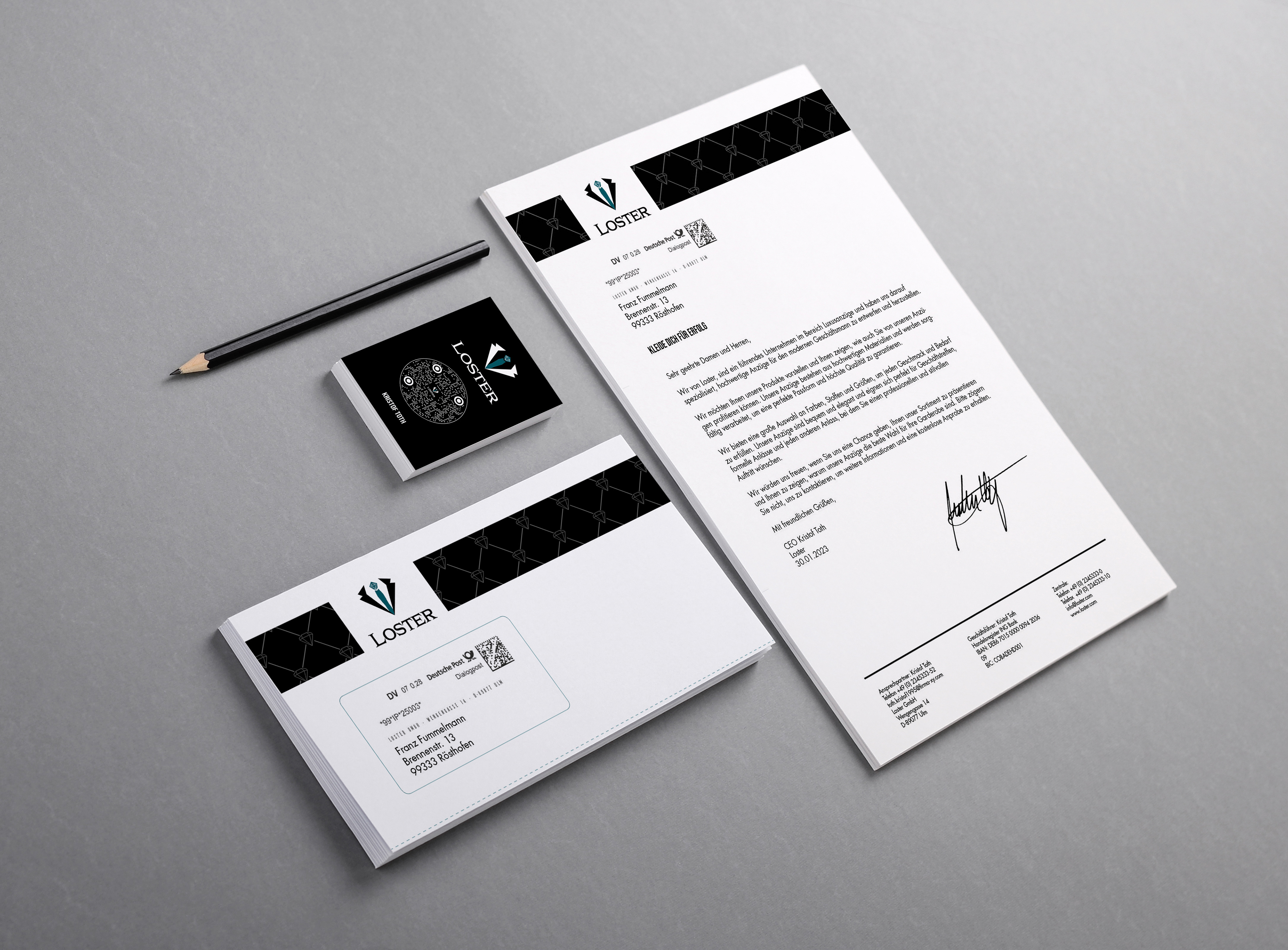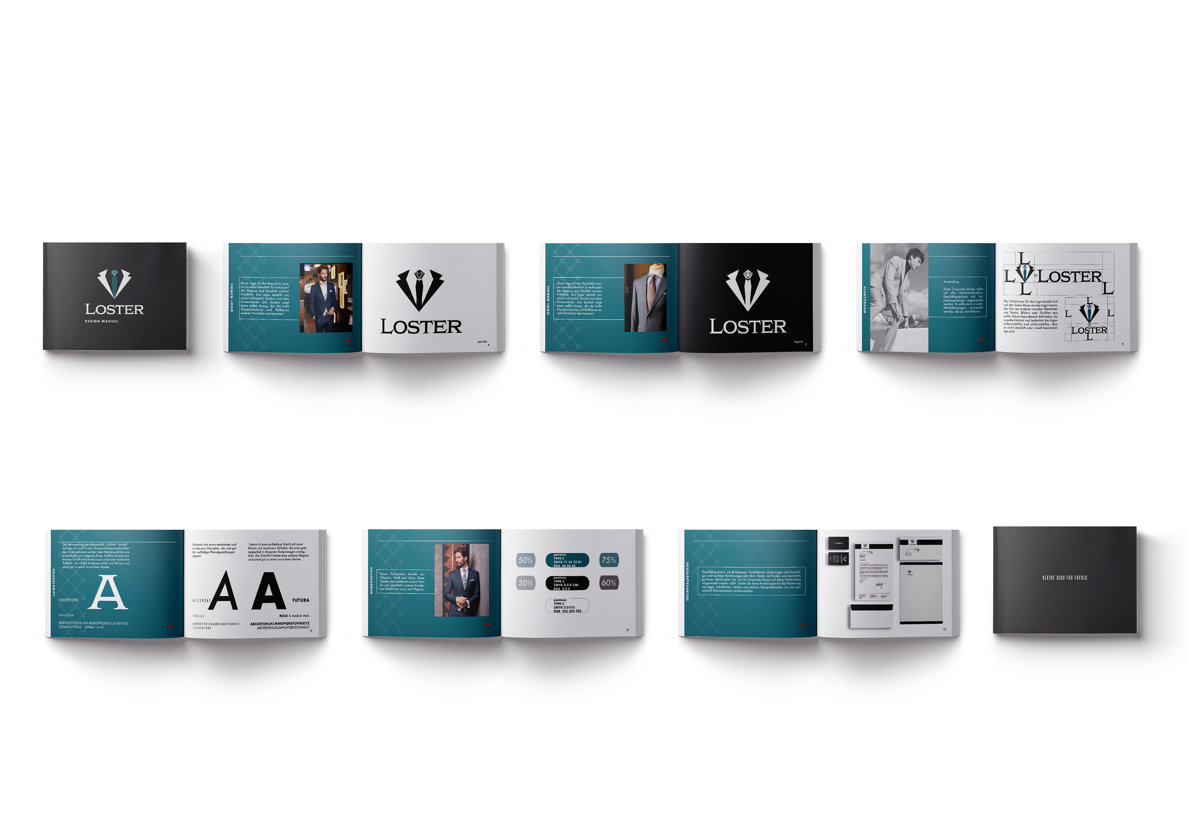 is a premium suit brand that embodies elegance, craftsmanship, and timeless style. For this project, I had the opportunity to design the logo and develop the complete brand manual, establishing a cohesive visual identity that reflects the brand’s refined and sophisticated character. The process included creating a balanced typography system, selecting an appropriate color palette, and defining consistent visual guidelines for both print and digital applications. The final result communicates professionalism and luxury, providing a strong and flexible foundation for Loster’s future marketing and branding efforts.